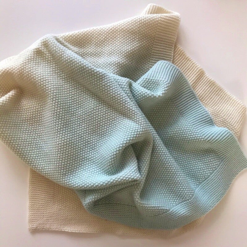 Prachtige gebreide babydeken in drie dip-dye kleuren. De dekens zijn met de hand geverfd met plantaardige kleurstoffen. Fijne deken voor in de cosleeper, wagen of om heerlijk onder te slapen.